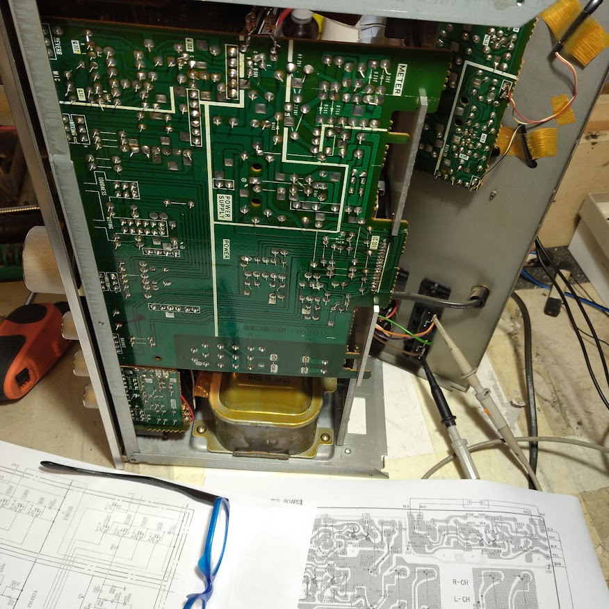| ingresso PHONO non funzionante: preamp RIAA senza alimentazione positiva, sostituita resistenza aperta nel circuito di alimentazione. |