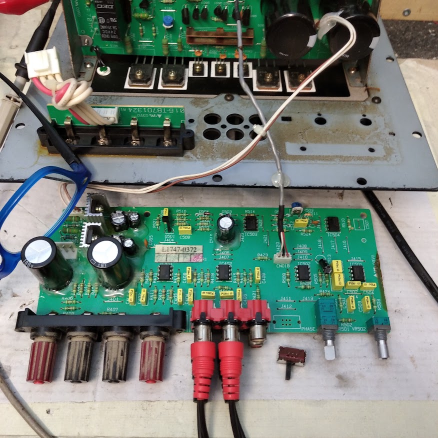 ingresso PHONO non funzionante: preamp RIAA senza alimentazione positiva, sostituita resistenza aperta nel circuito di alimentazione.