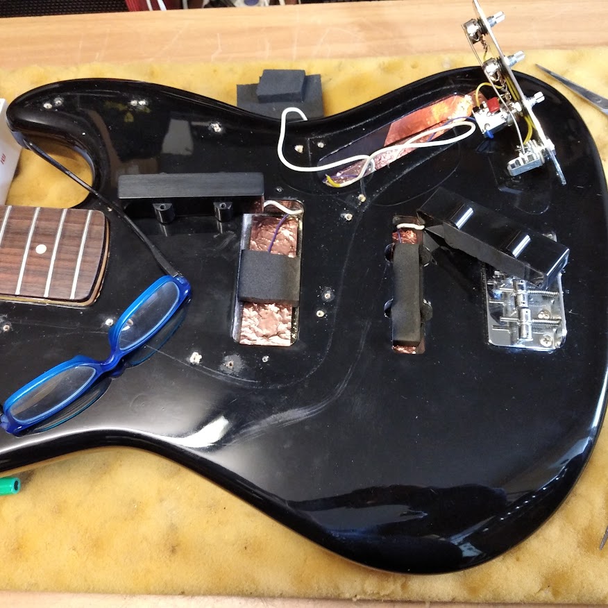 | pu SELECT by EMG, configurazione serie/parallelo selezionabile tramite tone pot pushpull, corde ernieball slinky 40-95, setup completo. |