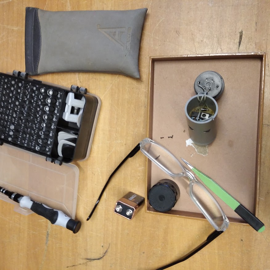 | EJECT non funzionante, la meccanica si blocca: riparato leveraggio di azionamento del braccio di espulsione del CD. |